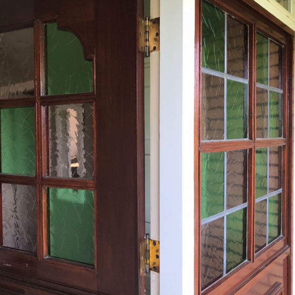 We hebben het glas in lood verwijderd en voorziening gemaakt voor een nieuw massief eikenhouten bossingpaneel.