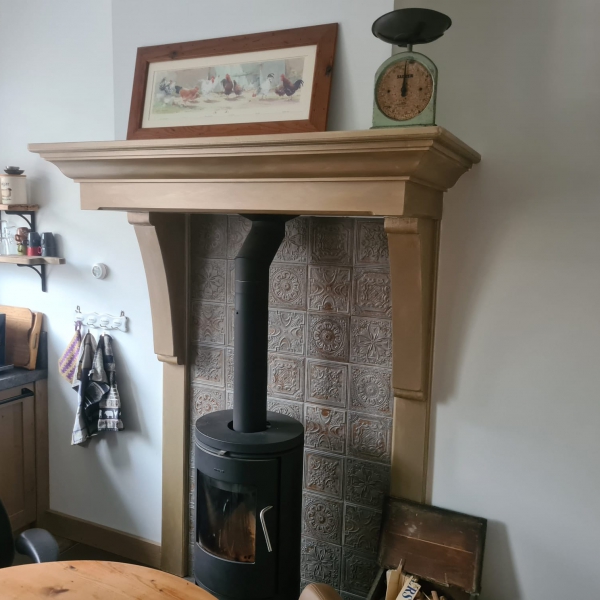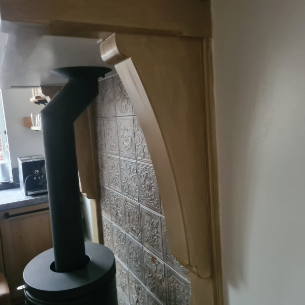 De schouw voor de houtkkachel is samen met de klant ontworpen en gemaakt.