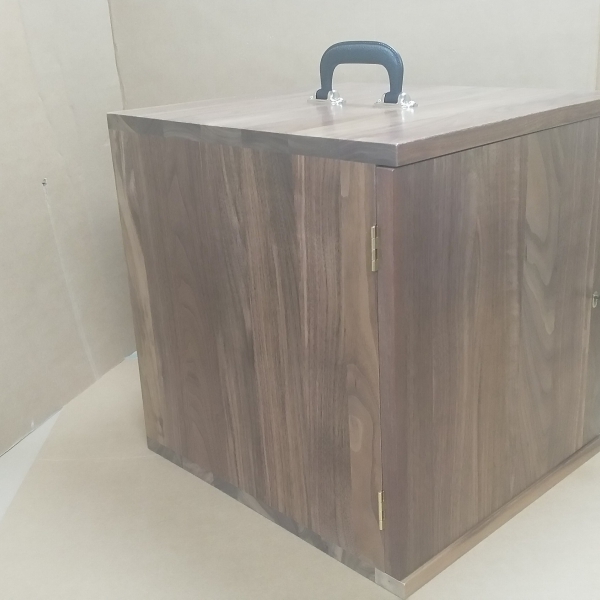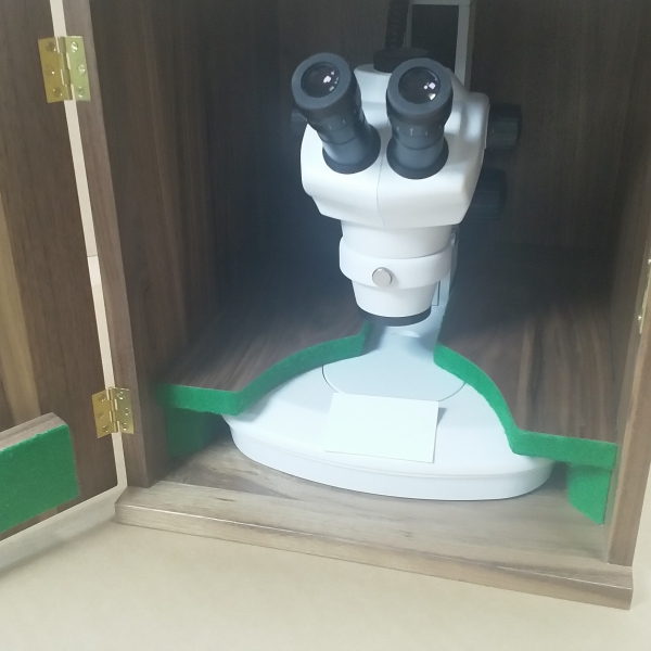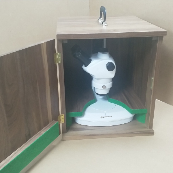 Deze wens was een massief Amerikaans Notenhouten binoculair instrumentenkastje, wat veilig meegenomen kan worden naar bestemming.