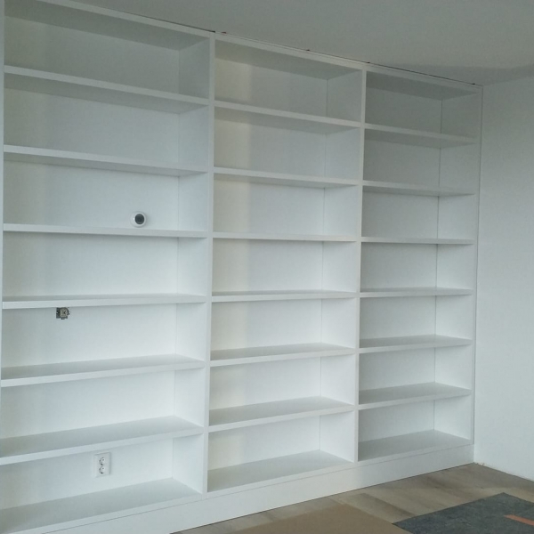 De klant wilde een massief houten boekenkast geschilderd in 9010 Sigma.