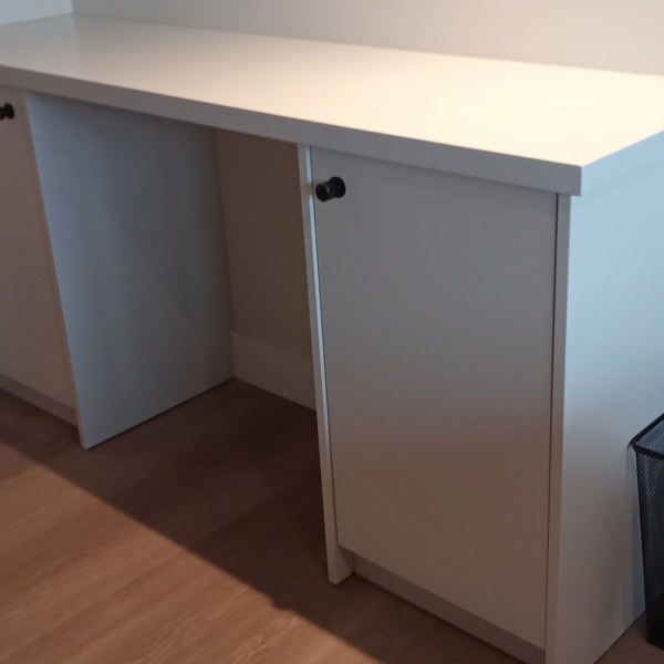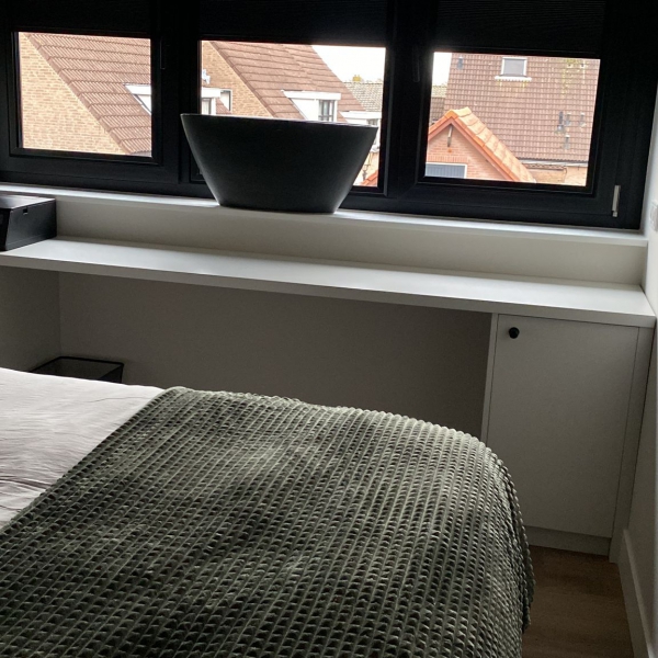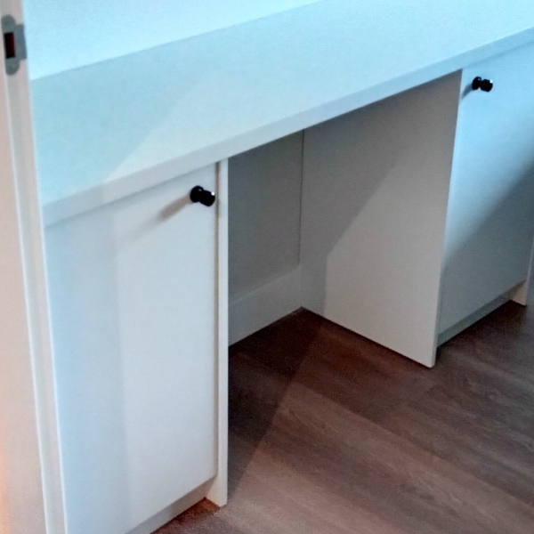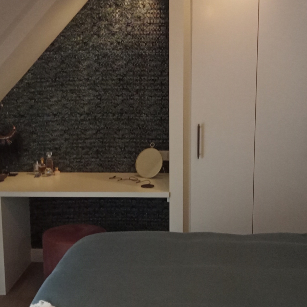 Ook hebben we in een schuine nis een bureau / kaptafel gemaakt.