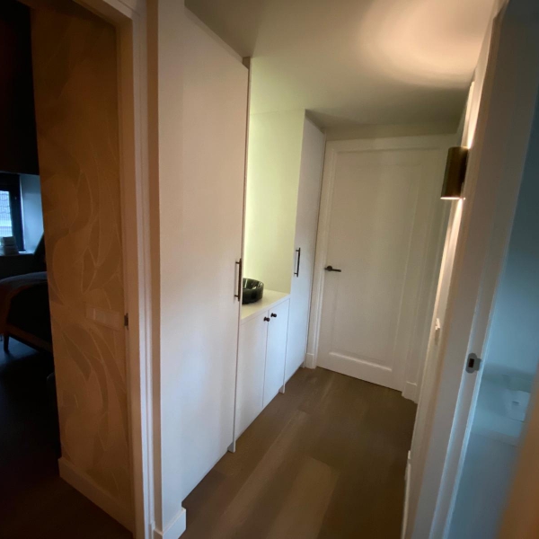 Deze inbouw dressingkasten op de slaapkamer hebben een verzonken detail.